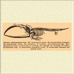 Скелет гренландского кита. Ocs — затылочная кость, Co — затылочный мыщелок, Sq — чешуйчатая кость, Pa — теменная, Fr — лобная, Imx — межчелюстная, Mx — верхнечелюстная, I — скуловая, L — слезная, St — грудная, Sc — лопатка, H — плечо, B — зачаток таза, F — зачаточная бедренная кость, T — зачаточная большая бедренная кость.