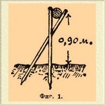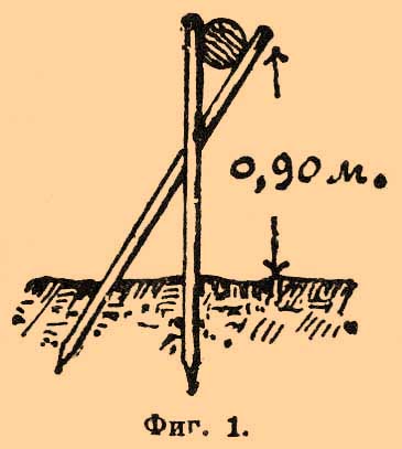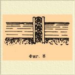 Для выделки прутяных канатов наиболее пригодны те породы ивы, которые растут отдельными длинными ветвями (напр. красная ива, краснолозник). Для удержания камня, назначенного для огрузки сооружений и фашинных покрывал, для ограждения сухой каменной кладки на откосах земляных валов и насыпей в предупреждение размыва их течением, а также для заграждения мелких проранов в боковых, закрытых выправительными сооружениями рукавах рек с целью способствовать окончательному занесению их песком и илом устраиваются фашинные плетни (фиг. 3).