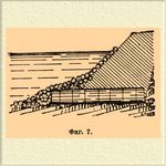 Хворост для выделки тяжелых Ф. должен быть мелкий и гибкий, чтобы его можно было правильно укладывать и связывать. Перевязи делаются из виц, но чаще из отожженной железной проволоки толщиною 3 мм. Тяжелые Ф. служат для укрепления подмываемых берегов рек (фиг. 6), для упрочения. т. е. прижатия ко дну и предохранения от подмывов подошвы откосов выправительных сооружений (фиг. 7) и для устройства заграждающих сооружений (фиг. 8).